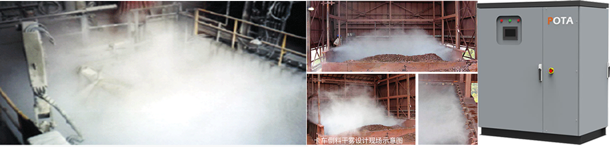 EZ/LP系列远程射雾器】 针对斗轮机部分,卡车装卸处,皮带下落处采用超细雾炮对于局部或者新增粉尘进行处理。 HP系列超细雾炮机】 超细雾泡可产生平均粒径 13μm 超细雾滴,达到捕尘,净化空气,降温降尘的作用,另外,超细雾炮移动灵活,可340 度自由旋转,距离了可达 60 米。