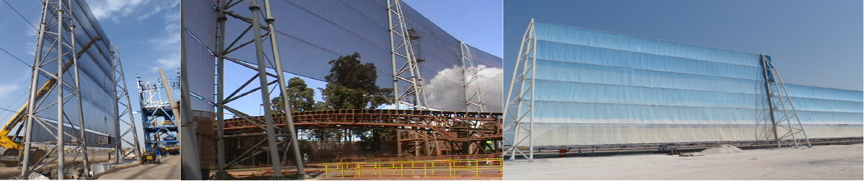 【制剂降尘类】 抑尘剂可吸附在粉尘表面,经过吸附,团聚成大颗粒物,然后加速沉降,较大限度的减少在加工过程中的粉尘。 道路抑尘剂,利用类似化妆品的锁水原理,保持路面的紧实和湿润,其主要成分是自然界中的植物提取物,五毒可降解。 【密闭降尘之微孔防尘网】 微孔防尘网可有效降低风速风压,阻挡粉尘逃逸难度。升高起尘的临界风速,防尘网高度可达32 米以上,跨度可达 30 米以上,网孔直径小于 1mm ,寿命长达 10-15 年,特殊设计,可抵抗 17 级以上的飓风天气。可应用于,矿山堆场,港口等场所,有效降尘。