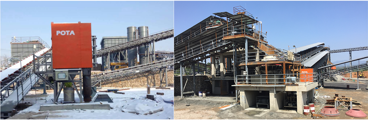 矿石从采收到加工有一整套破碎运输的生产线,在破碎过程中产生的粉尘占全部粉尘的30% ,针对破碎生产线中产生的粉尘,采用密闭降尘法,在物料磨碎过程中加装MINI 导料槽 K-1 K-2 系列,降低生成过程中的粉尘,从源头上抑制粉尘产生。